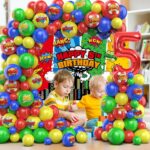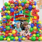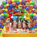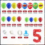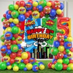 【Superhero Party Decorations】 The Superhero balloon arch kit includes 5inch balloons ( Dark blue*10, Green*10, Red*10, Yellow*10), 10inch balloons ( Dark blue*10, Green*10, Red*10, Yellow*10), 12inch balloons ( Dark blue*4, Green*4, Red*4, Yellow*4), Superhero Theme Balloons*16 (Four colors), 1 Superhero Theme Birthday Backdrop,1pcs balloon strip and 100pcs dot glue, 1pcs ribbon, 1pcs balloon tie tool