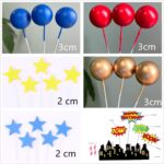 PERFECT PACKAGE : 4 x superhero themed cake toppers,5x blue stars cake toppers 5x yellow stars cake toppers,5 x golden balls cake toppers, 5 x blue balls cake toppers, 5x red balls cake toppers,A total of 29 sets.