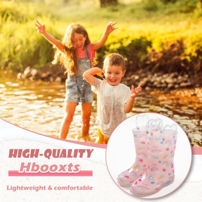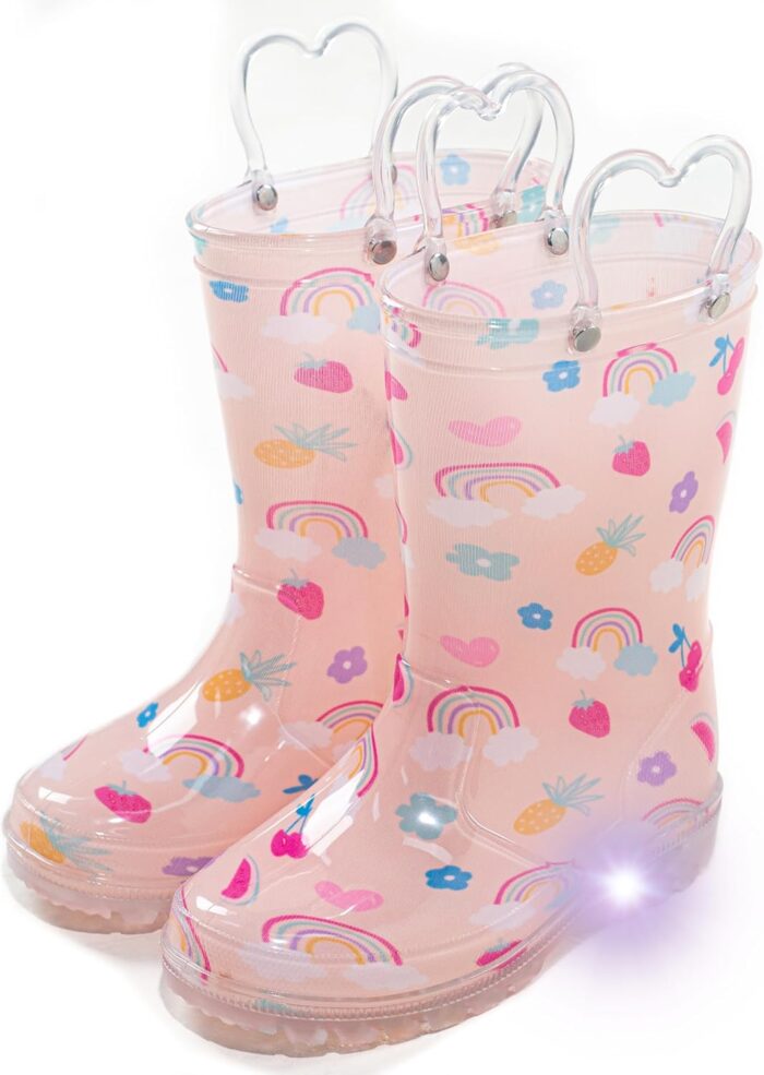 Toddler Light Up Rain Boots for Girls Boys Waterproof Rain Boots with Handles Outdoors Kid Rain Boots