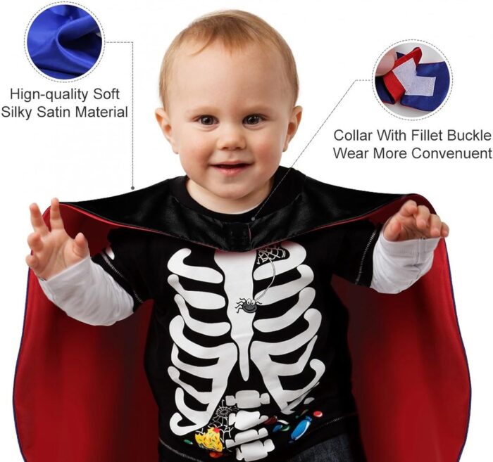 Material: This funny Halloween cape is made of colorful satin cloth with a bright sheen and is well-made to be reused for multiple holidays.
