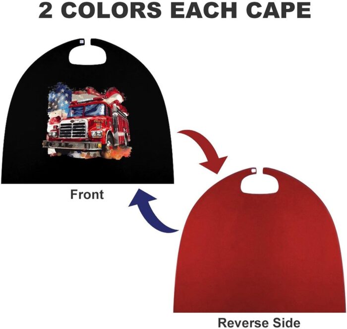 Design: The funny cape has a hook and loop design at the neckline, which is easy to put on and take off, and suitable for most neck sizes. Double-sided design, the front is cute prints, the back is red and can be reversed for use.