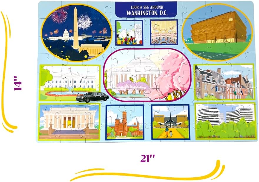 HOME OF THE BRAVE: A multicultural geography activity for kids, the Look and See Around Washington, D.C. 72 PC Puzzle invites young children to discover some of the Nation’s most popular attractions!