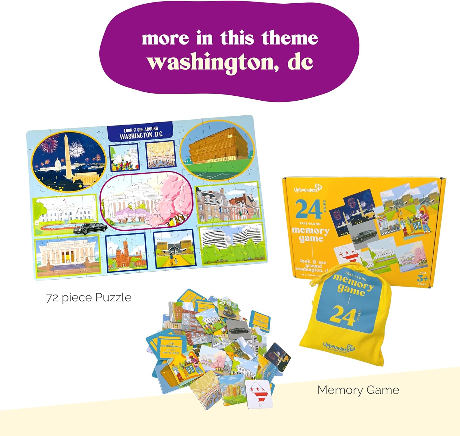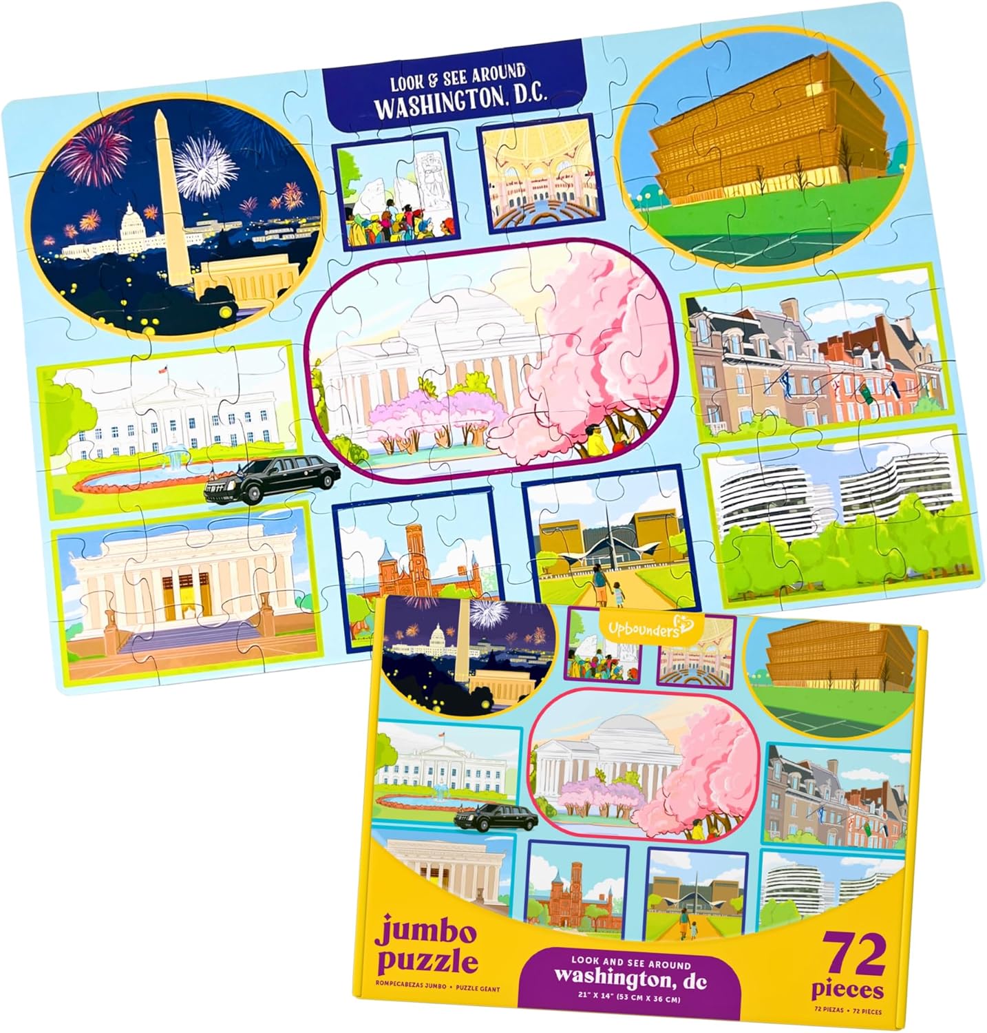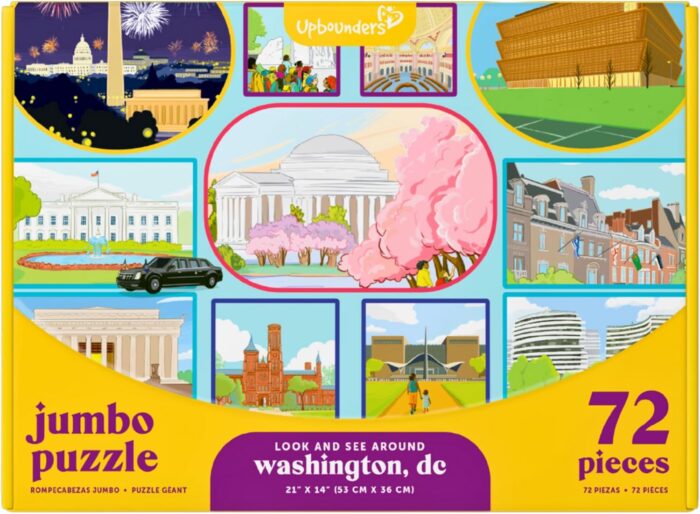 Embassy Row, The National Mall, and MLK Memorial are but a few of the best sites in Washington, D.C. The Upbounders Look & See Around Washington, DC, 72 PC Puzzle invites young children to discover some of the most popular attractions in the Nation’s Capital! About Upbounders The world belongs to kids. They need to feel they belong in the world. This is why at Upbounders everything we do promotes belonging. With high-quality products, we support all families in making sure all our future minds are seen and loved. Our products, for kids ages 6 and under, celebrate cultural and ethnic differences accurately in ways that are relatable, inspiring and transformative. From award-winning puzzles, to board games to flash cards, we are a small MBE (Minority Business Enterprise) with a big ambition: to enable how children get to understand the world and each other.