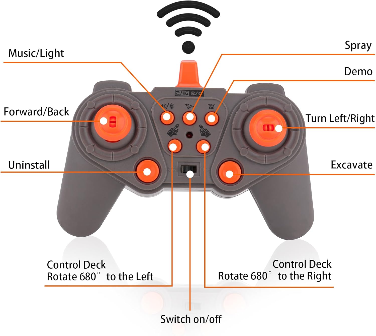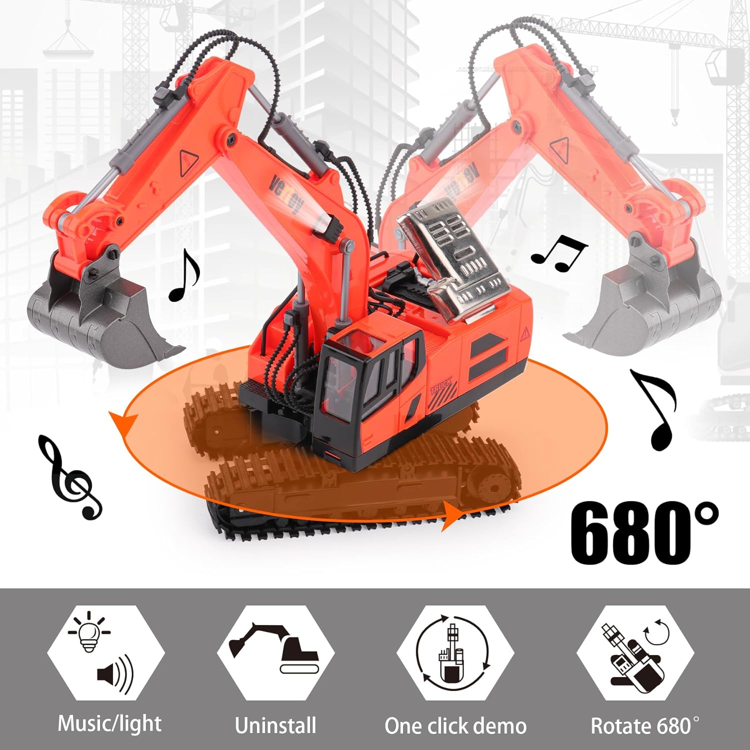 Richer Features: Big, cool, and more fun toys you will get your hands on. With Real smoke, 680° rotation body, and flashing lights for effects. The structure is compelling, including excavator frame, cockpit, quality track, metal shovel.