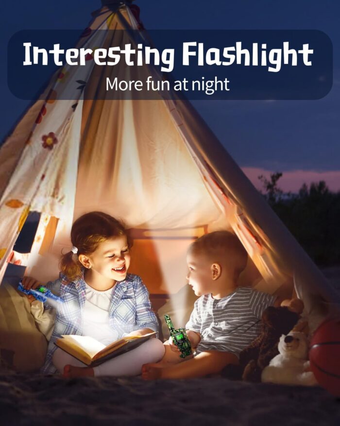 Advanced Features: Our kid walkie talkies are packed with advanced features to enhance the user experience. They include 22 channels and 38 privacy codes, auto squelch for clear communication, hands-free function (VOX) for convenience, a backlit LCD display for easy use in the dark, built-in flashlight, earpiece connection, 10 ring tones, battery indicator, channel auto scan, power saving function and adjustable volume control, etc