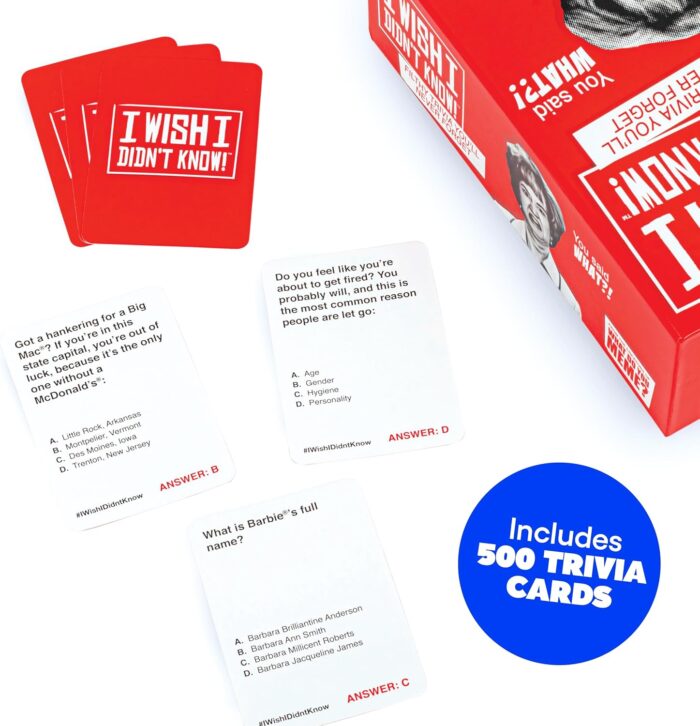 What’s Inside: Includes 500 trivia cards plus instructions.